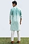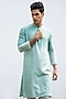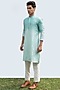 Featuring an aqua blue shaded kurta in bam silk base with embroidery. It is paired with contrasting ivory cotton silk pyjama pants.