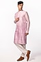 Featuring a lilac tie-dye kurta in bam silk base with mirror work. It is paired with contrasting cotton silk pyjama pants.