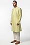 Featuring a mint green kurta in bam silk base with mirror work. It is paired with contrasting cotton silk pyjama pants.
