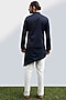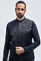 Featuring a navy blue bundi jacket in suiting fabric base with hand embroidery. This contains one piece only.