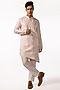 Featuring a pink asymmetrical kurta in bam silk base with pintucks. It is paired with contrasting cotton silk pyjama pants.