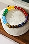 Introducing a festive Rakhi gift hamper. This hamper includes a white marble platter and a multi-colored bracelet having chakra beads and sodalite in 92.5 sterling base.