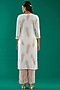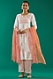 Featuring a peach kurta in cotton base with hand block print. It is paired with matching pants and a kota shaded dupatta having gota work.