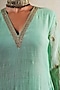 Featuring a green kurta in pure silk chanderi base with hand embroidery. It is paired with gharara pants and a pure silk organza and pure silk tissue dupatta. Accentuate it with statement earrings and heels for a festive occasion or pooja ceremony.