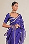 Purple Pure Silk Organza Peacock Motif Embroidered Saree Set