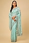 Featuring an aqua saree in tissue base with hand and machine embroidery. It is paired with an unstitched blouse fabric. Accentuate it with statement jewellery and embellished heels for a wedding, sangeet or engagement ceremony.
