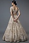 Featuring a beige lehenga in organza base with thread and sequins hand embellished, including a cancan. It is paired with a matching blouse having sequins work and a dupatta.