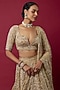 Featuring a beige lehenga in organza base with hand work, including sequins, cutdana and moti work. It is paired with a blouse and a dupatta. Accentuate it with statement jewellery and heels for weddings or a bridal look.