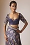 Featuring a blue saree in tissue base. It is paired with a blouse. Accentuate it with statement jewellery and heels for a wedding, engagement or sangeet ceremony.