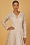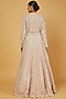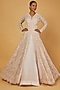 Featuring a blush pink jacket gown in organza base with sequins and cutdana embellishment.