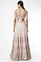 Featuring a blush pink lehenga in net base with sequins and cutdana hand embellishments. It is paired with a matching sleeveless blouse and a dupatta.