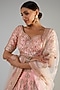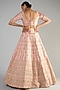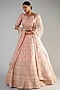 Featuring a blush pink lehenga in raw silk base with zardosi embellishments. It is paired with a matching blouse having maal work and a dupatta.