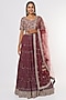 Featuring a brown lehenga in chikankari base with chikankari and zari embroidery. It is paired with a matching blouse and a net dupatta.