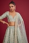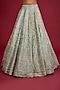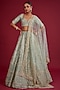 Featuring a firoza lehenga in raw silk base with zardosi and zari hand embroidery, including a cancan. It is paired with an embellished bustier having maal work and a dupatta. Style this lehenga with necklace set for a bridal look.