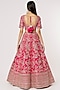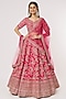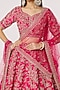 Featuring a fuchsia lehenga in raw silk base with embossed zardosi, cutdana and sequins embroidery. It is paired with a matching embroidered blouse and an embroidered dupatta.