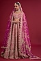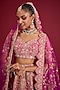 Featuring a fuchsia lehenga in raw silk base with zardosi hand embroidery, including a cancan. It is paired with an embellished bustier having maal work and two dupattas. Style this lehenga with necklace set for a bridal look.