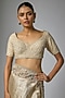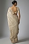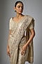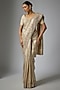 Featuring a gold saree in banarasi base with machine embroidery. It is paired with a stitched blouse. Style it with an embellished blouse, statement jewellery and heels for your wedding or engagement ceremony.