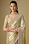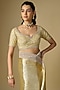 Featuring a gold saree in banarasi silk base. It is paired with a blouse. Accentuate it with statement jewellery and heels for a festive occasion, wedding or engagement ceremonies.