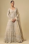 Featuring a gold lehenga in organza base with hand and machine embroidery. It is paired with a jacket and a dupatta. Accentuate it with diamond jewellery and heels for a bridal, engagement or a reception look.