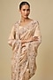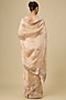 Featuring a gold saree in tissue base with hand and machine embroidery. It is paired with an unstitched blouse. Accentuate it with diamond jewellery and heels for a bridal, engagement or a reception look.