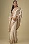 Featuring a gold saree in tissue base with hand and machine embroidery. It is paired with a stitched blouse. Accentuate it with diamond jewellery and heels for a bridal, engagement or reception look.