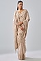 Featuring a gold saree in tissue base with hand and machine embroidery. It is paired with an unstitched blouse fabric. Accentuate the designer saree with kundan polki or meenakari jewellery, embellished heels and a potli bag for bridal look, Perfect for your wedding, sangeet or engagement ceremony.