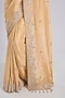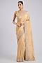 Featuring a gold saree in tissue base. It is paired with an unstitched blouse. Accentuate it with statement earrings and embellished heels for a festive gathering, wedding or engagement ceremony.
