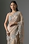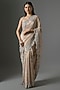 Featuring an exquisite Golden Saree crafted in a tissue base, adorned with hand and machine embroidery. Elevate this designer ensemble with an embellished blouse, zirconia or swarovski jewellery, a floral hairdo, and embellished block heels for a striking look, perfect for weddings, sangeet or engagements ceremonies.