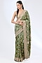 Green Bandhej Handloom Sequin & Thread Hand Embroidered Saree Set