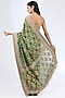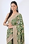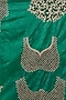 Featuring a green saree in bandhej handloom base with dabka, sequins and thread hand embroidery. It is paired with an unstitched blouse. Accentuate the designer saree with polki jewellery, embellished heels and a potli bag for your wedding, mehendi or engagement ceremony.