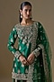 Featuring a green kurta in chanderi silk base with aari, sequins, zardosi hand and machine embroidery. It is paired with sharara pants and an organza dupatta having boota detailing. Accentuate it with statement jewellery, heels, and a sleek clutch for festive occasions, sangeet or wedding ceremony.