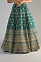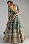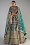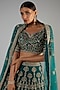 Featuring a bottle green lehenga in raw silk base with zari and zardosi embellishments, including a can-can. It is paired with a matching embellished blouse having maal work and a dupatta.