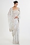 Featuring a grey saree in tissue base with hand and machine embroidery. Accentuate it with diamond jewellery and heels for a bridal, engagement or reception look.