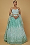 Featuring an ice blue lehenga in tissue base with sequins embellishments. It is paired with a matching blouse and a dupatta.
