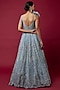 Featuring an ice blue gown in organza base with sequins, hand and machine embroidery. Accentuate it with statement jewellery and heels for weddings or a bridal look.