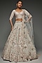 Featuring an ice blue lehenga in raw silk base with sequins embroidery. It is paired with a matching choli having hand embroidery and a dupatta.