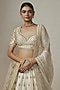 Featuring an ivory lehenga in metallic organza base with motif hand embroidery. It is paired with a aari hand embroidered blouse and an organza dupatta. Accentuate the designer lehenga with statement jewellery and embellished heels for a wedding, sangeet or engagement ceremony.