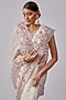 Featuring an ivory saree in organza base with sequins and resham hand embroidery. It is paired with a matching embroidered unstitched blouse.