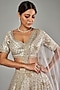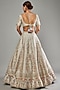 Featuring an ivory lehenga in raw silk base with sequins, thread and zari embellishments. It is paired with a matching blouse having maal work and a dupatta.