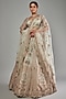 Featuring an ivory lehenga in raw silk base with zardosi embellishments. It is paired with a matching blouse having maal work and a dupatta.