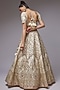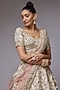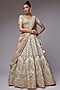 Featuring an ivory lehenga in raw silk base with hand embroidery, including a can-can. It is paired with a matching embroidered blouse and a dupatta. Accentuate it with polki jewellery and heels for a bridal look.