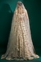 Featuring an ivory lehenga in raw silk base with sequins hand and machine embroidery. It is paired with an embroidered blouse and a two dupattas. Elevate your bridal look with statement jewellery and chic heels for a touch of glamour and sophistication.