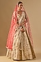 Featuring an ivory lehenga in raw silk base with zardosi embellishments. It is paired with a blouse and a pair of dupattas. Accentuate the designer lehenga with polki jewellery, embellished heels and a potli bag for your wedding or engagement ceremony.
