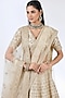 Featuring an ivory lehenga in raw silk base with zardosi embellishments. It is paired with a blouse and two dupattas. Accentuate the designer lehenga with statement jewellery, embellished heels and low bun for a wedding or engagement ceremony.
