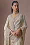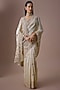 Featuring an ivory saree in tissue base with embroidery. It is paired with an unstitched blouse. Accentuate it with kundan polki or emerald jewellery and block heels for a wedding, reception or engagement ceremony.