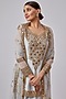 Featuring a light blue kurta in organza base with cutdana and sequins hand embroidery. It is paired with matching sharara pants and an embroidered dupatta.