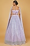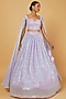 Featuring a lilac lehenga in organza base with sequins embroidery. It is paired with a matching crop top having an attached dupatta.