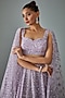 Featuring a lilac lehenga in organza base with sequins, cutdana hand and machine embroidery, including a can-can. It is paired with a matching blouse and a dupatta.
