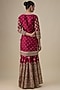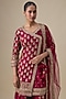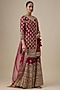 Featuring a maroon kurta in chanderi silk base with aari, sequins, zardosi hand and machine embroidery. It is paired with sharara pants and an organza dupatta having boota detailing. Accentuate it with statement jewellery, heels, and a sleek clutch for festive occasions, sangeet or wedding ceremony.