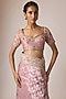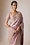 Featuring a mauve saree in banarasi silk base. It is paired with a blouse. Accentuate it with statement jewellery and heels for a wedding, engagement or sangeet ceremony.